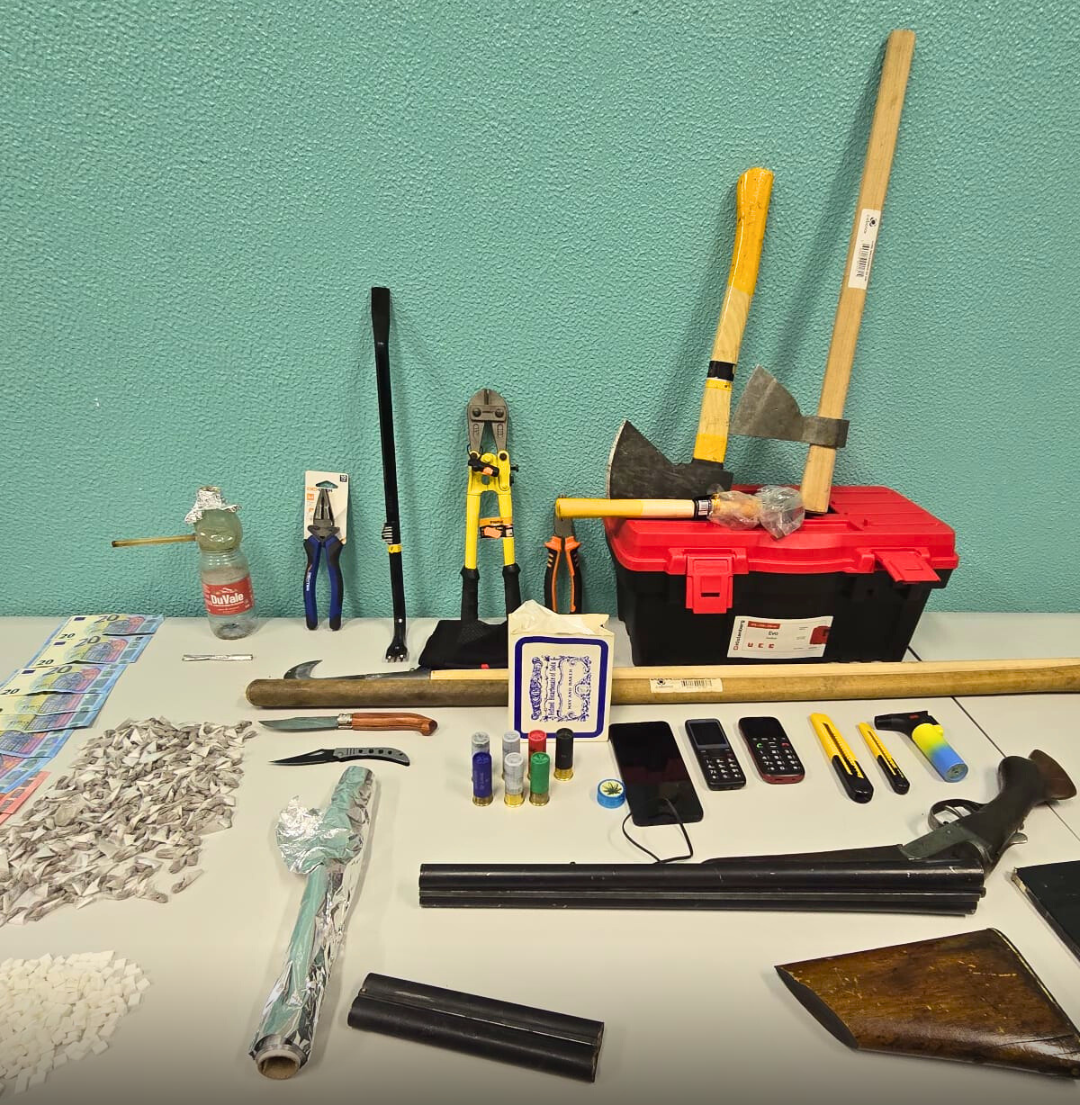 Segundo a mesma fonte, foram apreendidas substâncias suspeitas de serem produto estupefaciente, que, após quantificação, correspondiam a 527,8 doses individuais de heroína e 340,75 doses individuais de cocaína. Foram ainda apreendidos diversos objetos, como um cabo de madeira, uma foice, uma caixa com ferramentas, um pé de cabra, entre outros. “Por não ter sido apresentada prova da sua legítima aquisição, circunstância que suscitou fundada suspeita quanto à eventual proveniência ilícita, motivo pelo qual foram recolhidos para averiguação”, partilhou.