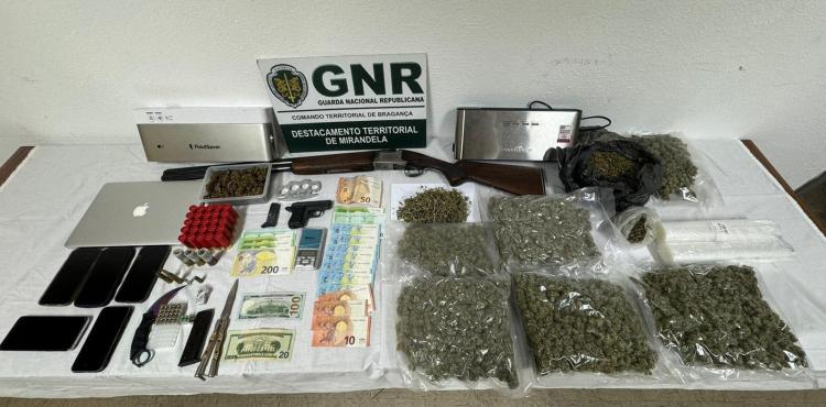 Nos 16 mandados de busca, sete domiciliárias e nove em veículos, nos concelhos de Mirandela, Bragança, Chaves, Paredes e Montalegre, foram apreendidas 644 doses de canábis, 13 doses de haxixe, 1384 euros, cinco telemóveis, uma soqueira, uma pistola de alarme, uma arma branca, uma espingarda, cartuchos, um computador, duas máquinas de embalamento, uma balança, uma faca de corte, um computador e vários objetos destinados ao acondicionamento e distribuição de droga.